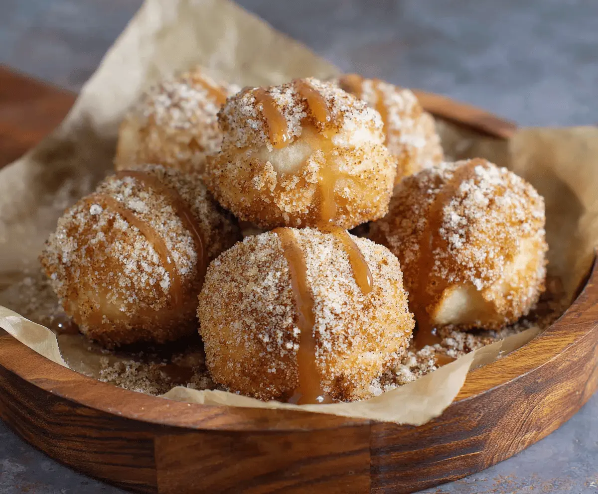 Carefully remove the bombs from the air fryer and allow them to cool for a few minutes. Optionally, drizzle with caramel sauce before serving. Enjoy your warm, crispy, and gooey apple pie bombs!