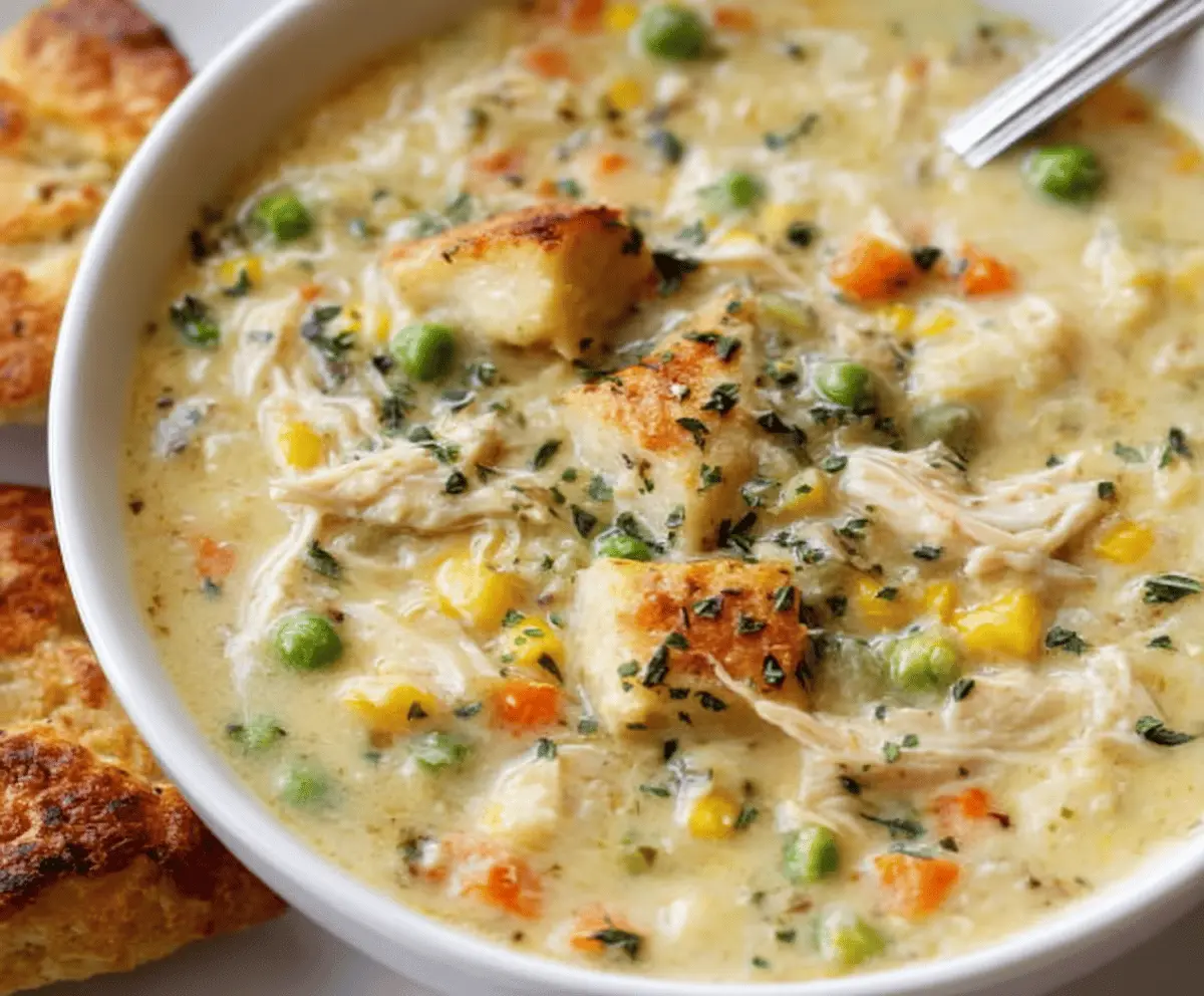Chicken Pot Pie Soup is like a warm hug in a bowl, combining tender chicken, soft potatoes, carrots, and peas all swimming in a creamy, comforting broth that tastes just like the filling of a classic pot pie. It’s rich and hearty without being too heavy, making it perfect for chilly days when you just want something cozy and satisfying.