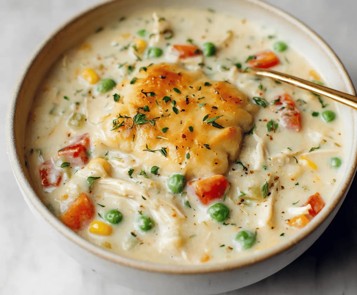 I love making this soup because it’s a little easier and faster than baking an actual pot pie, but it still gives you all those amazing flavors that remind you of home cooking. I usually add a sprinkle of fresh thyme and sometimes top it with buttery biscuit crumbles or flaky crackers to give a little extra texture—my family always tells me it’s like having pie and soup all at once!