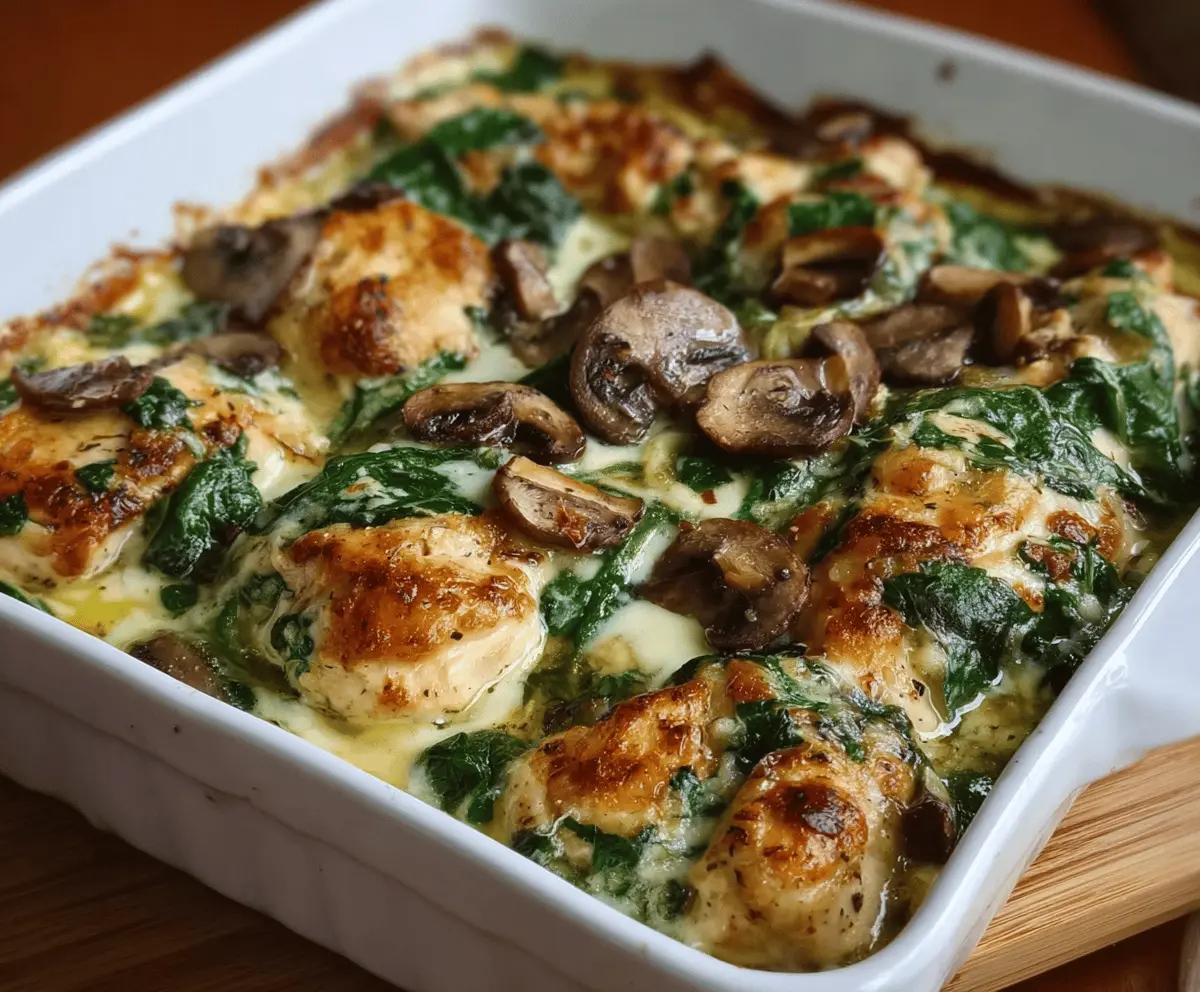 This Chicken, Spinach, and Mushroom Low-Carb Bake is a simple and tasty dish that brings together juicy chicken, fresh spinach, and hearty mushrooms all baked in one dish. It’s full of flavor while keeping things light and healthy with low-carb ingredients. The creamy texture and the tender veggies make every bite satisfying.