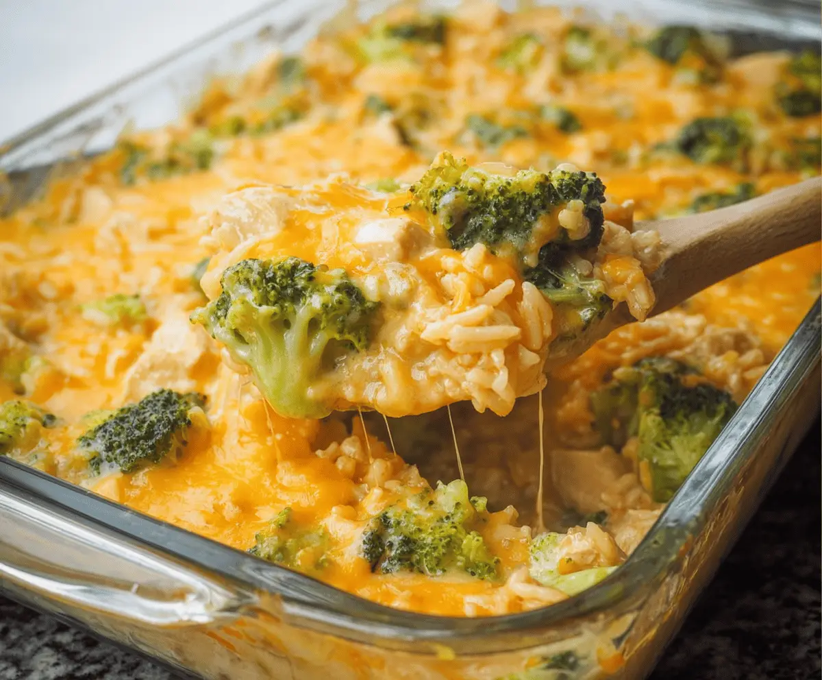 Creamy Chicken Broccoli Rice Cheese Casserole