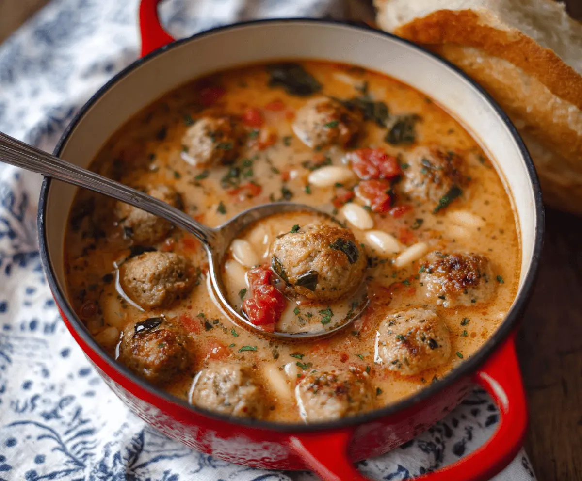 Creamy Italian Meatball Soup is a hearty and comforting bowl packed with tender meatballs, tender pasta, and rich, creamy broth. You get a wonderful mix of Italian flavors like garlic, herbs, and Parmesan cheese all in one cozy, warm soup. The creaminess gives it a smooth texture that makes every spoonful feel extra satisfying.