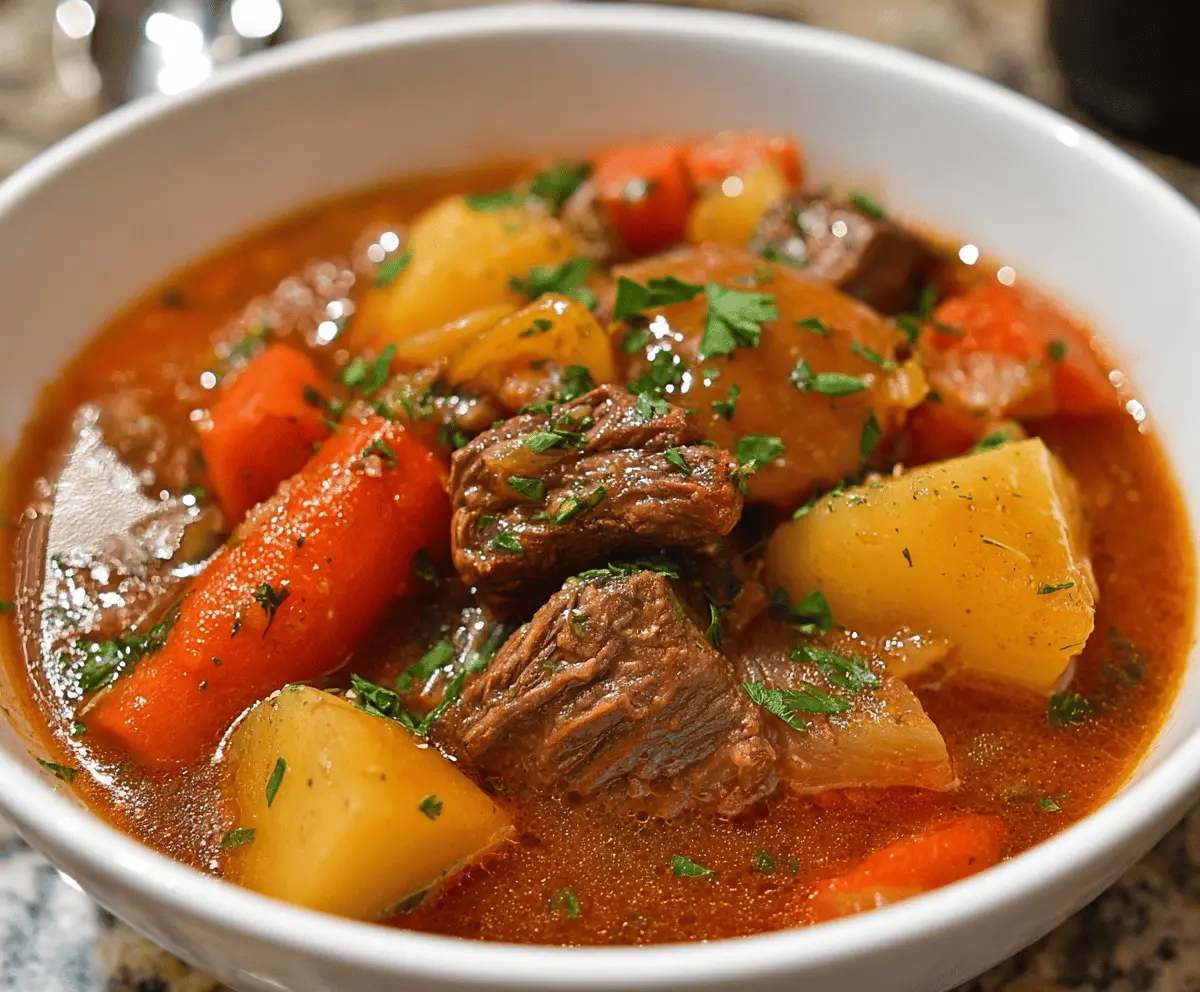 I love making this stew on days when I have other things to do because I can just toss everything into the crockpot in the morning and forget about it until dinner. The smell that fills the house is amazing, and by the time I’m ready to eat, the beef is perfectly tender and all the veggies have blended together into a satisfying, wholesome meal. I always add a little extra seasoning to make it just how my family likes it. It’s one of those recipes that’s easy to adjust but always comes out great.