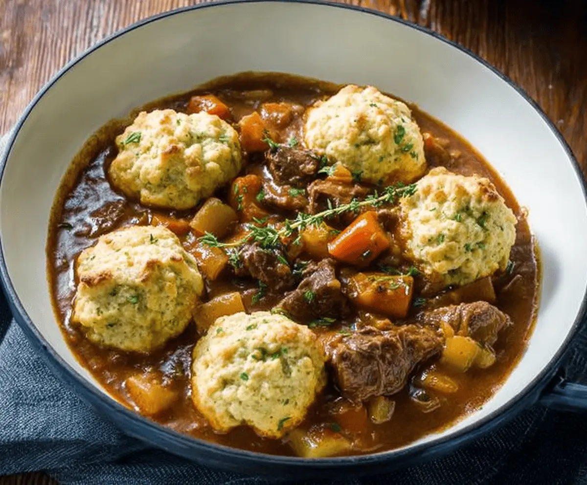 Delicious Beef Stew and Dumplings is the kind of meal that feels like a big warm hug on a chilly day. Tender chunks of beef slowly cooked with carrots, onions, and herbs in a rich, hearty broth make every bite comforting. The fluffy, soft dumplings on top soak up all that tasty stew goodness, making each spoonful extra satisfying.
