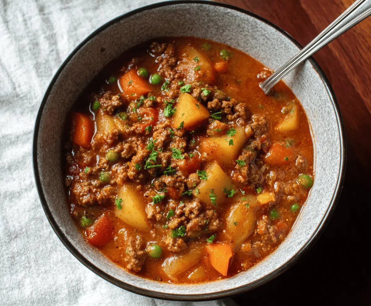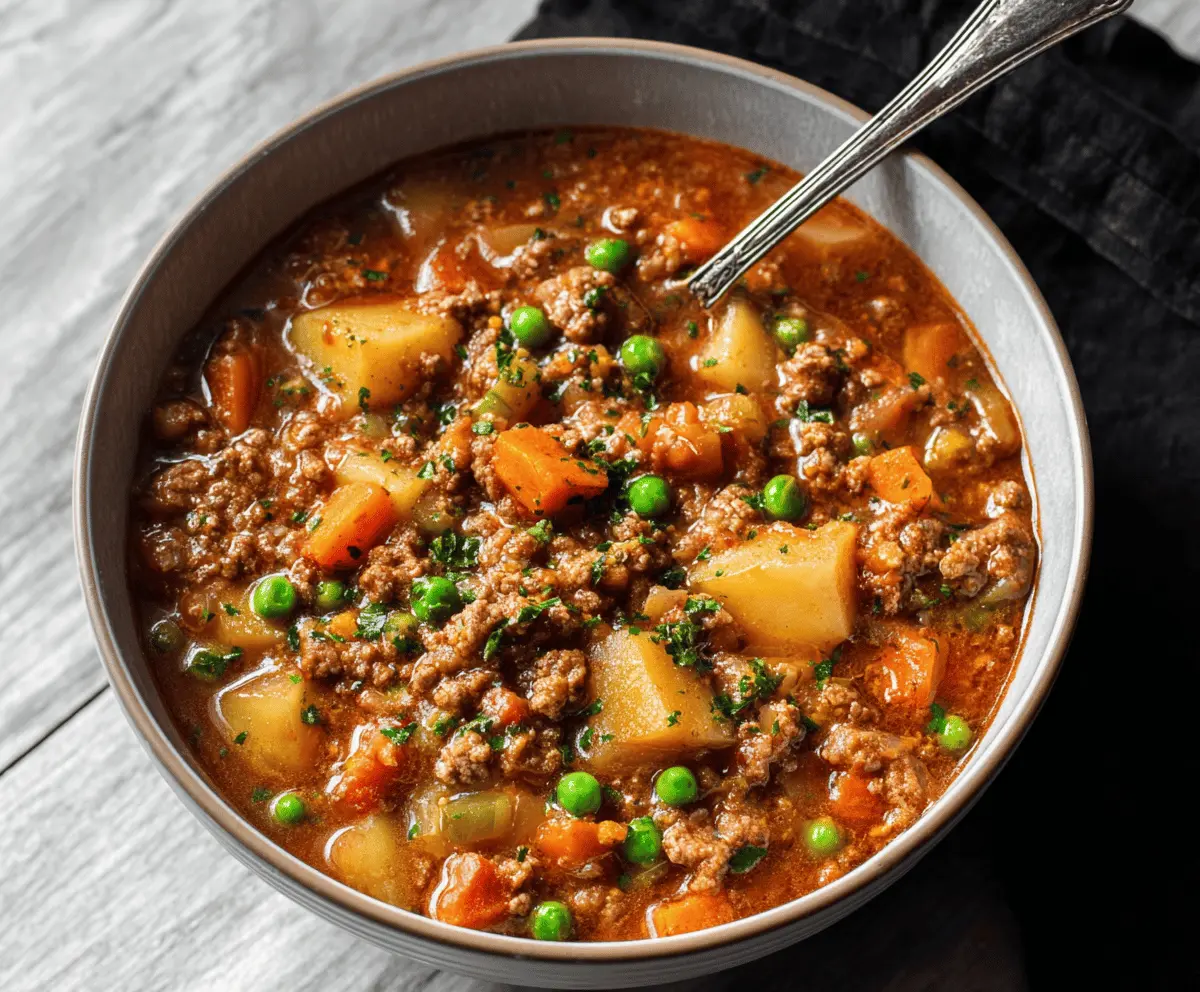 Hamburger Stew is a hearty and comforting dish that’s simple to make and full of flavor. It usually features ground beef, tender vegetables like potatoes, carrots, and peas, all simmered together in a rich, savory broth. The result is a warm, filling stew that’s perfect for chilly days or when you need a satisfying meal without a lot of fuss.