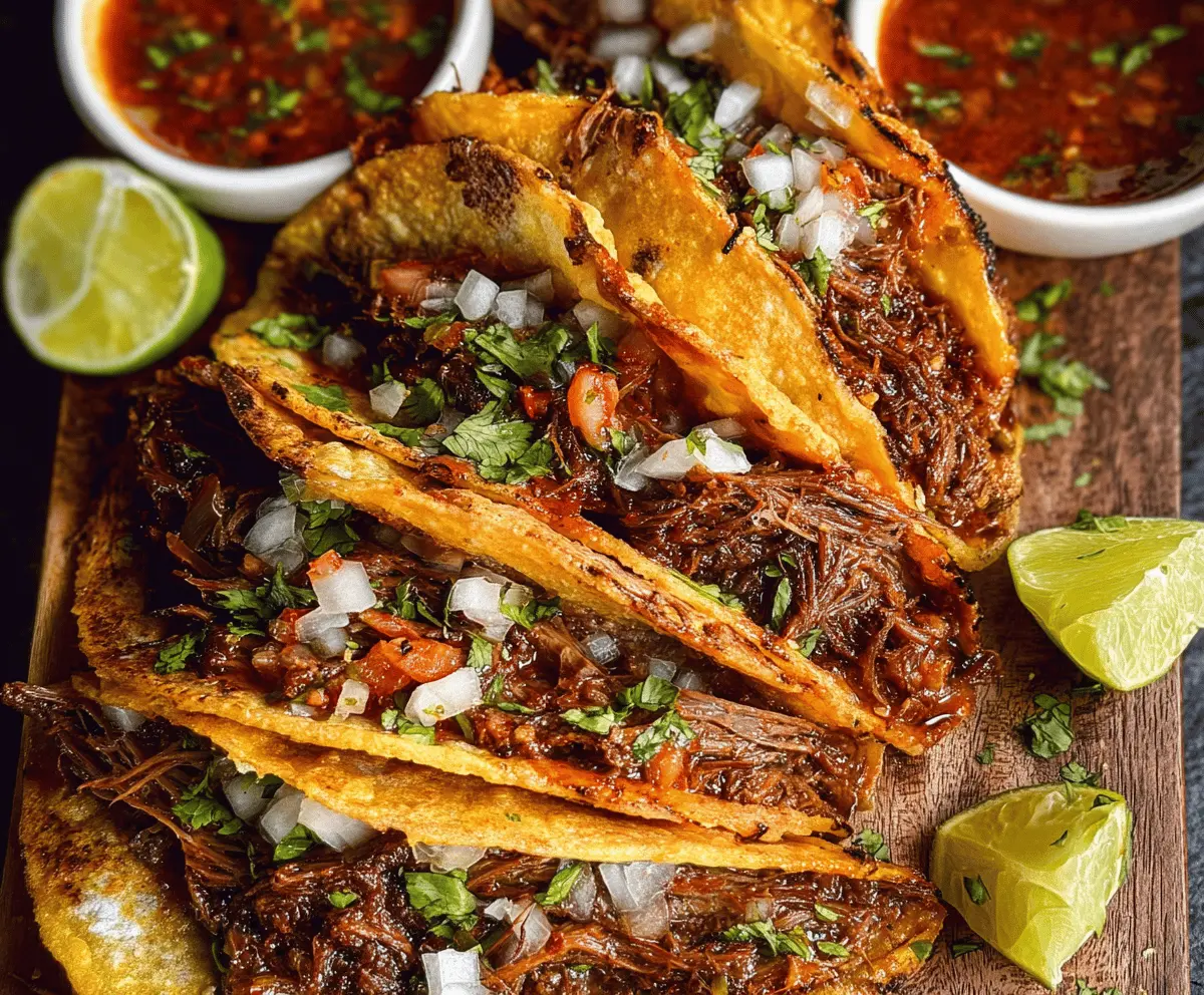 I love making birria tacos because they bring everyone around the table; the process of cooking the beef low and slow is totally worth it for the melt-in-your-mouth texture. One of my favorite things is how you can customize the toppings—fresh onions, cilantro, a squeeze of lime, and maybe some melted cheese for a little extra comfort. It’s the kind of meal that feels special but also super casual and fun to eat.