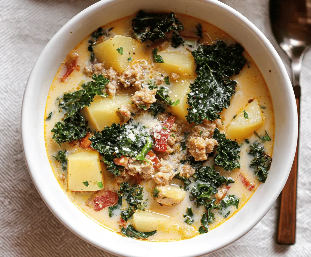 Sausage Potato and Kale Soup is a hearty and comforting bowl that’s perfect for chilly days. It brings together savory sausage, tender chunks of potato, and vibrant kale for a filling meal with lots of good flavors and textures. The sausage adds a bit of spice and richness, while the potatoes make it nice and smooth, and the kale gives it a fresh, green touch.