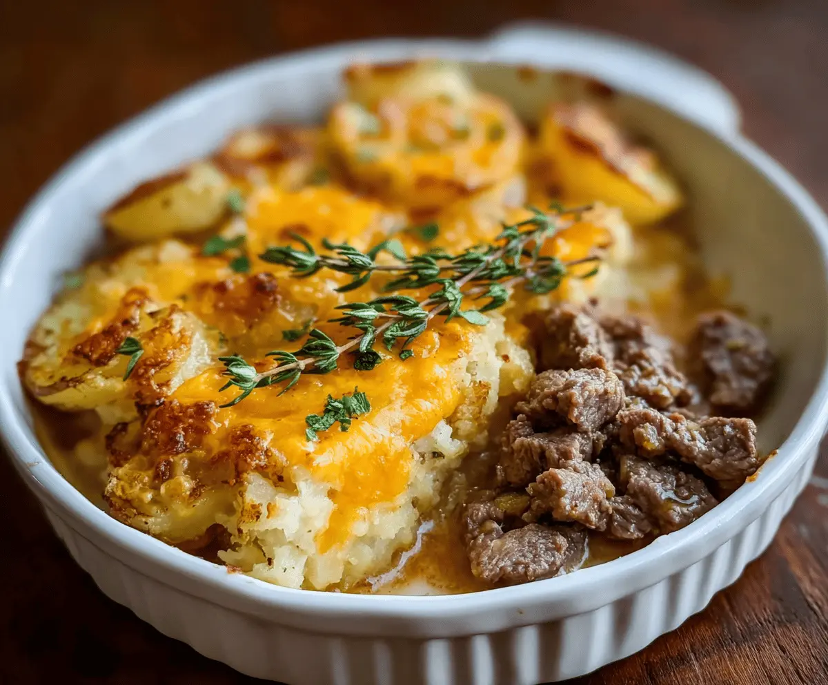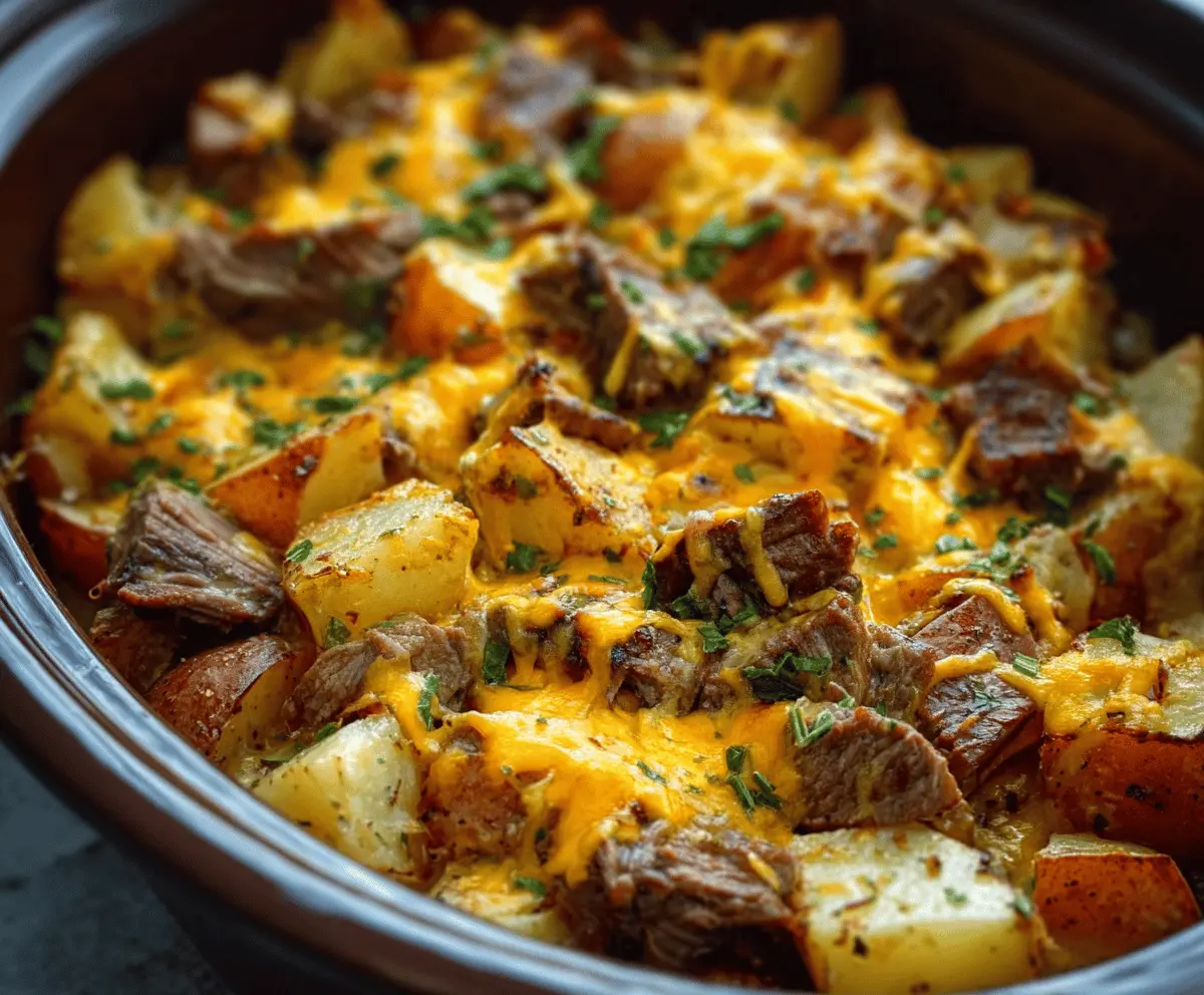 This Slow Cooker Steak and Cheddar Potato Casserole is the perfect mix of hearty and cheesy comfort food. Tender chunks of steak, creamy potatoes, and loads of melted cheddar cheese come together slowly in the crockpot, making your kitchen smell amazing for hours. It’s one of those easy meals that feels like a warm hug on a plate.
