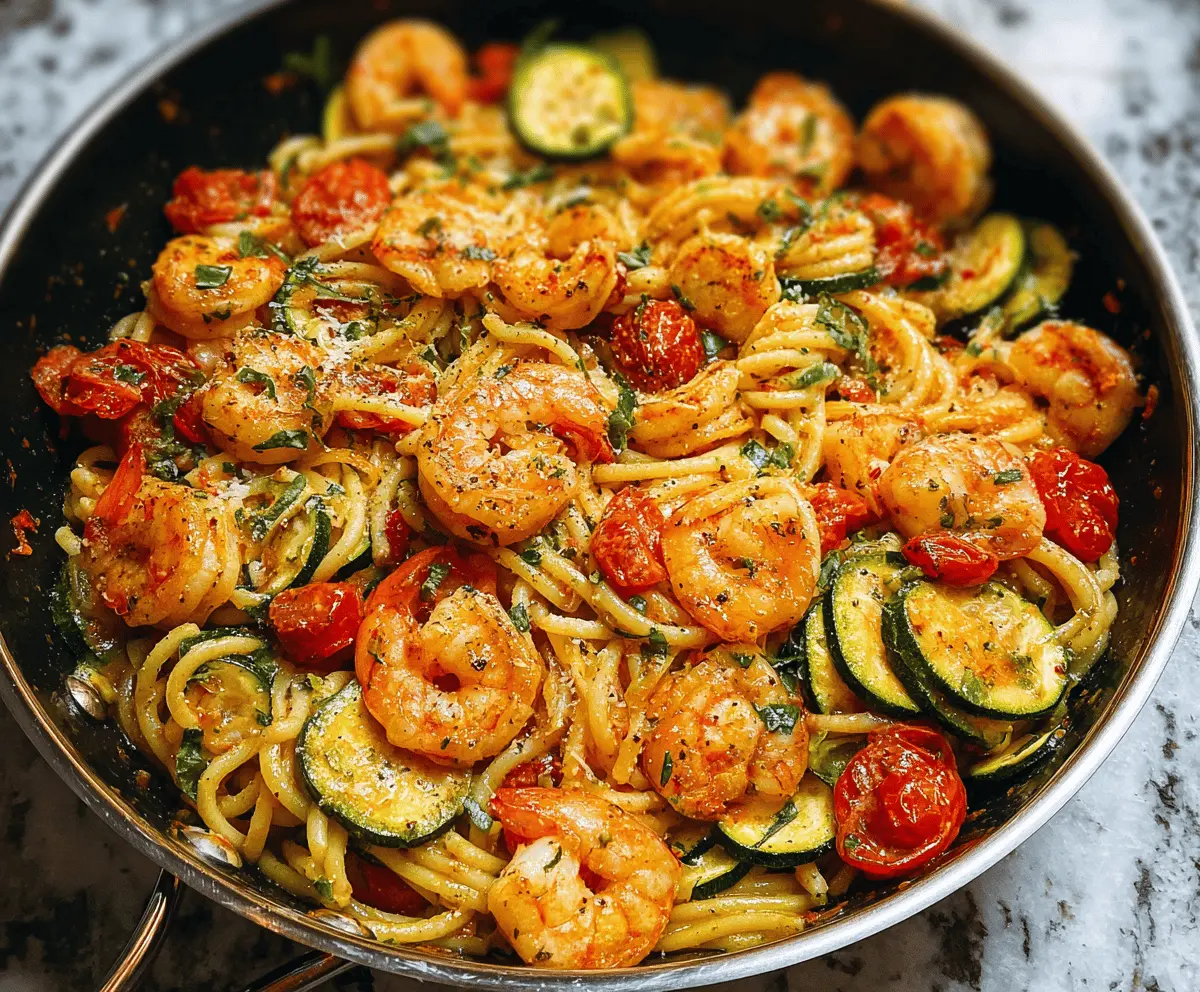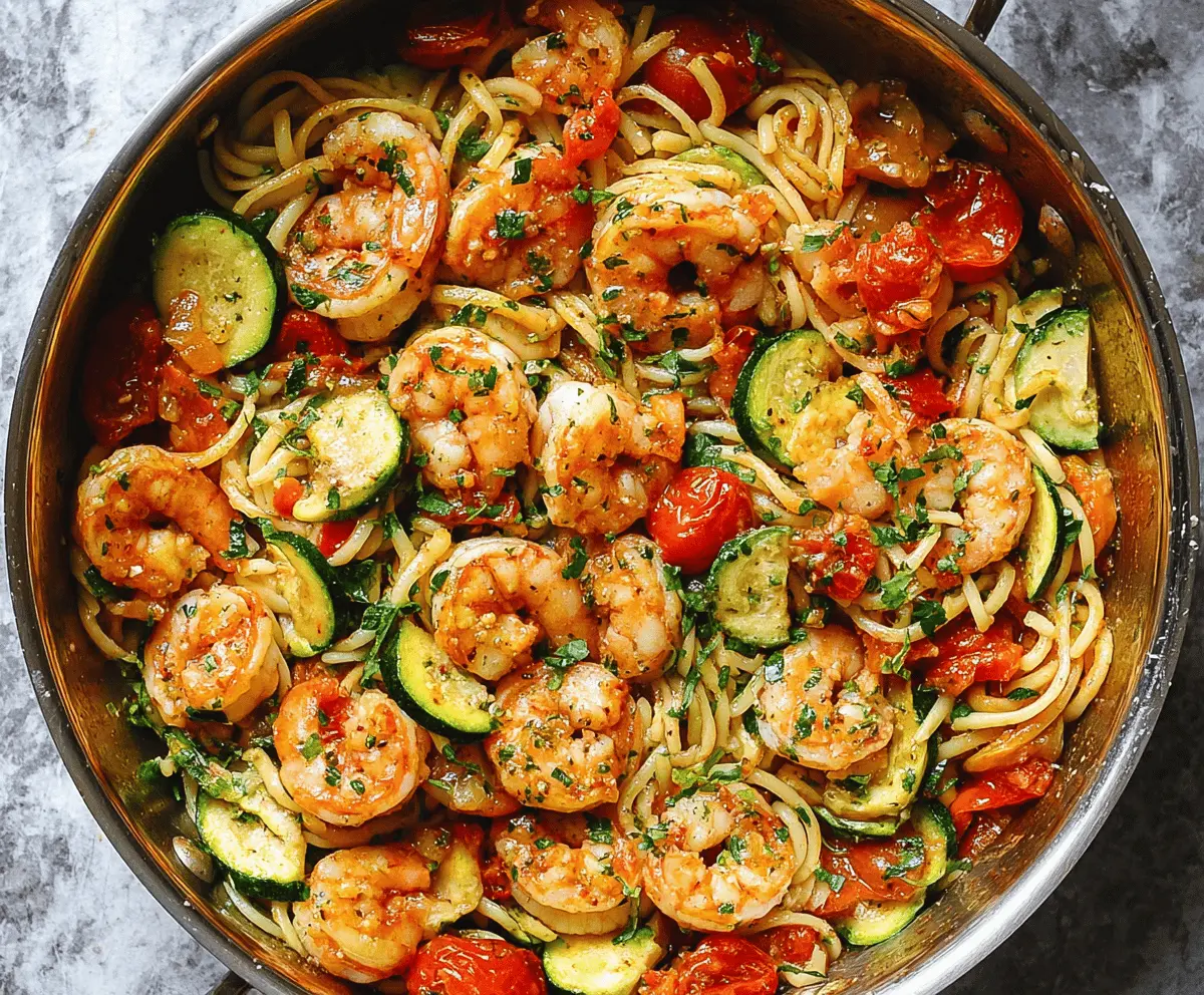 I love making this pasta when I want something quick but still special. The shrimp cook fast and the zucchini adds a nice crunch, so everything keeps a great texture. One tip I always follow is to let the tomatoes gently soften so they become a bit saucy without losing their freshness. It makes every bite feel just right.